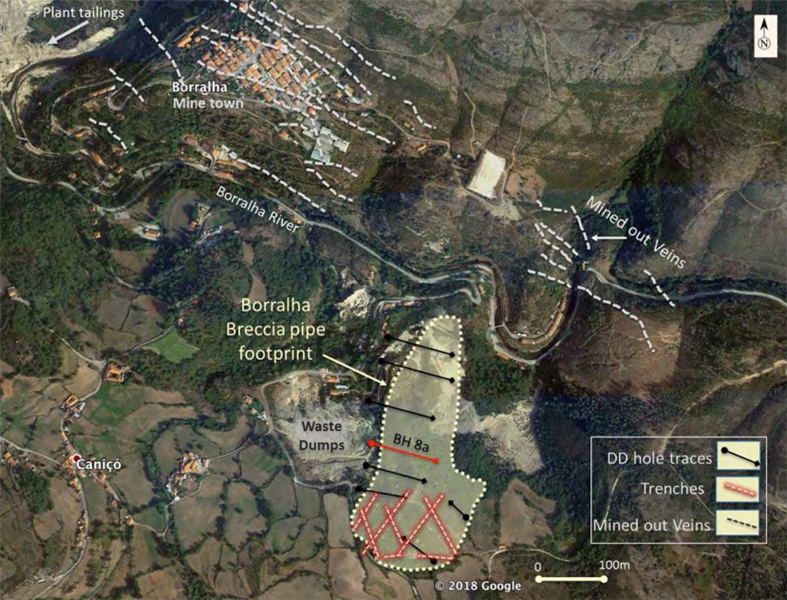 These tonnes are bolstered by impressive exploration upside, given that Vila Verde’s land packaged is three times larger than Borralha’s and boasts plenty of supporting historical work, including: