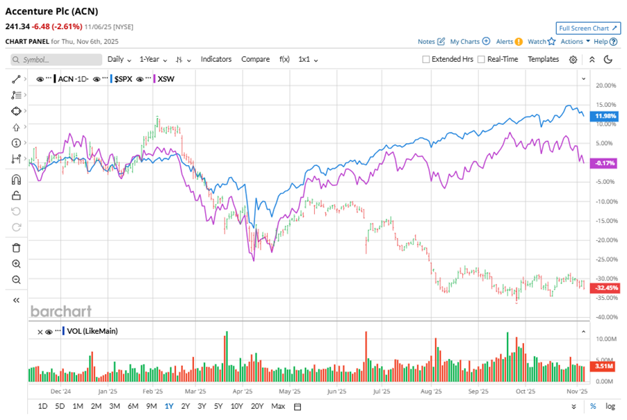 Shares of this leading global professional services company have underperformed the broader market considerably over the past year. ACN has declined 32.2% over this time frame, while the broader S&P 500 Index ($SPX) has rallied nearly 13.4%. In 2025, ACN stock is down 31.4%, while SPX is up 14.3% on a YTD basis.