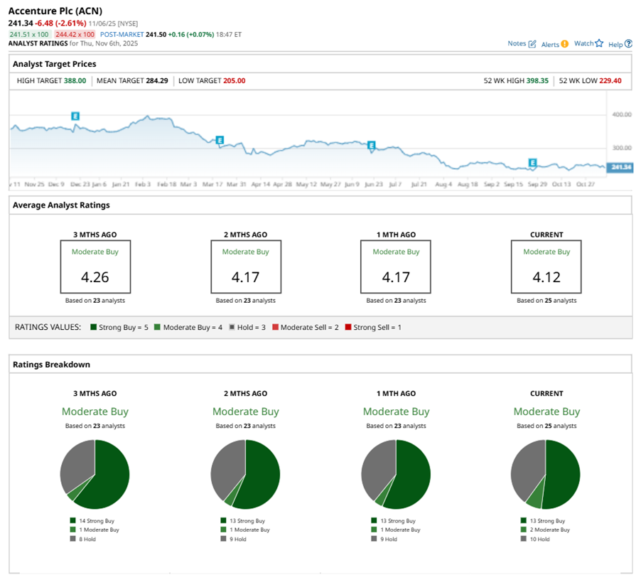 On Oct. 22, Citigroup Inc. (C) initiated coverage of ACN with a “Neutral” rating and $266 price target, implying a potential upside of 10.2% from current levels.
