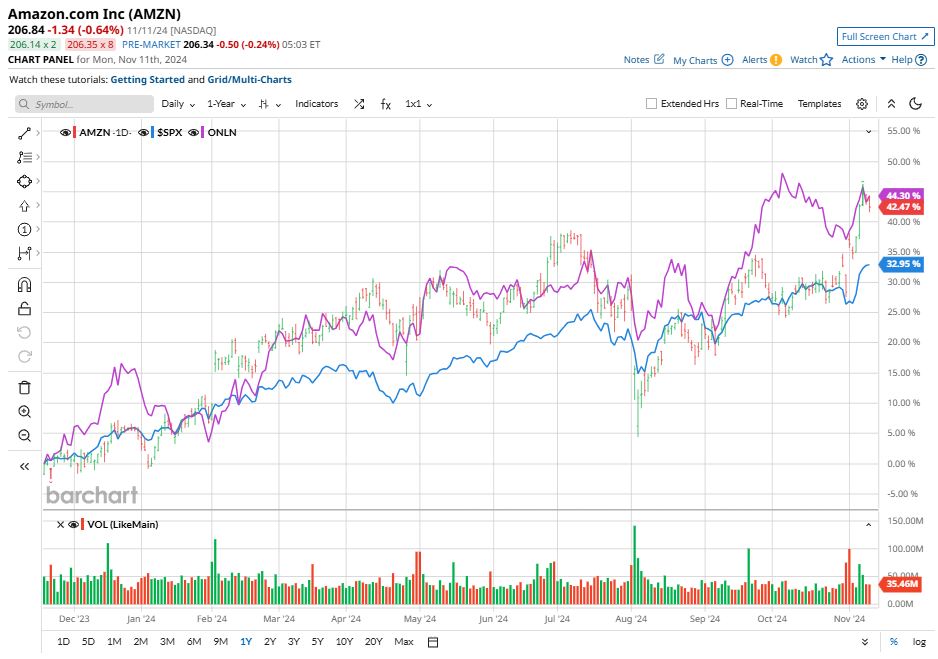 Shares of this e-commerce giant have outperformed the broader market considerably over the past year. AMZN has gained 44.1% over this time frame, while the broader S&P 500 Index ($SPX) has rallied nearly 35.9%. In 2024, AMZN stock is up 36.1%, surpassing the SPX’s 25.8% rise on a YTD basis.
