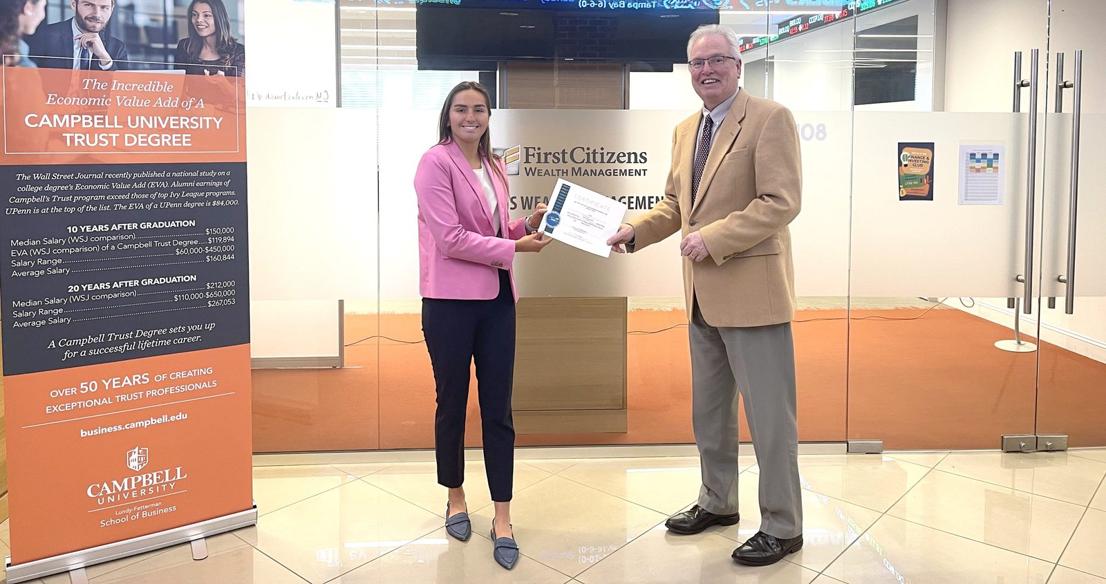 2nd Place: Charlie Blizzard: Charlie Blizzard, a sophomore from Greenville, North Carolina, majoring in Trust and Wealth Management, claimed second place with a portfolio value of $121,708.85, representing a 21.71% increase. Entering the competition with no prior experience, Charlie found the Stock Market Game instrumental in developing his investment strategy. He gained valuable insights into riskier trades and learned to discern which strategies to apply in the real market. His most profitable trade came from purchasing Tesla shares just before their sharp increase in late November. Blizzard’s journey highlights the game’s value as a learning tool in a risk-free environment.