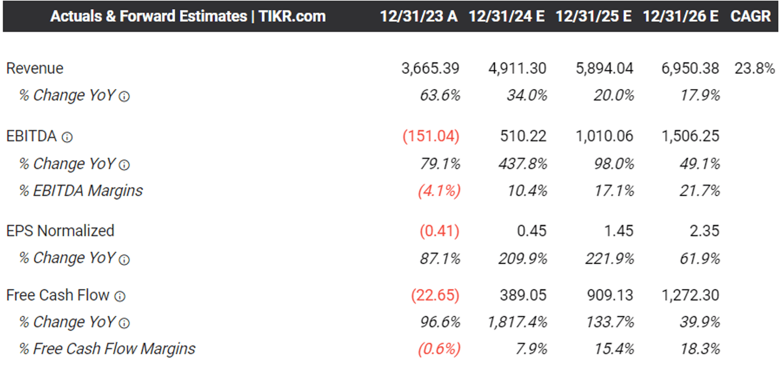 Based on the management’s raised FY2024 adj EBITDA guidance of $500M at the midpoint (+231% YoY) and the latest shares outstanding of 474.22M, we are looking at an adj EBITDA per share of $1.05.