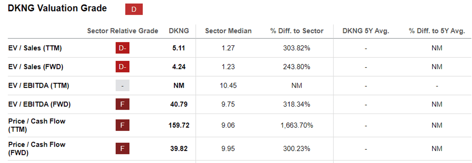This is why we can understand why DKNG has been awarded the premium FWD EV/ EBITDA valuations of 40.79x and FWD Price/ Cash Flow valuations of 39.82x, compared to the sector median of 9.75x and 9.95x, respectively.