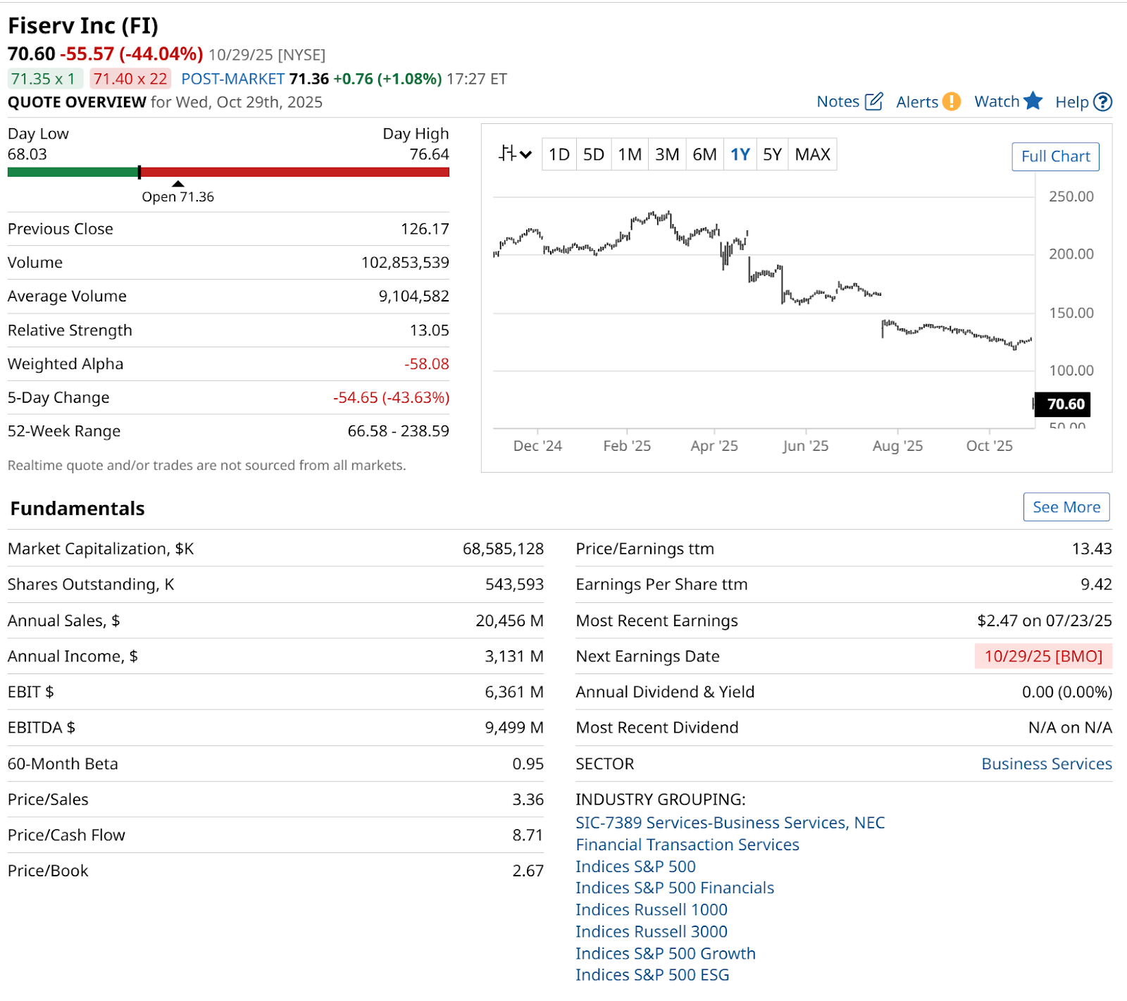 This article is less about FI than it is a warning for traders. Fiserv was a stock selling at a reasonable multiple, with a history of market-like volatility. It is in a very competitive industry, but is a prominent business in its field. It is a fintech stock that even has its hands in crypto.