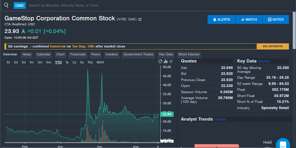 Earnings Estimates: Analysts expect GameStop to report second-quarter revenue of $895.7 million according to data from Benzinga Pro.