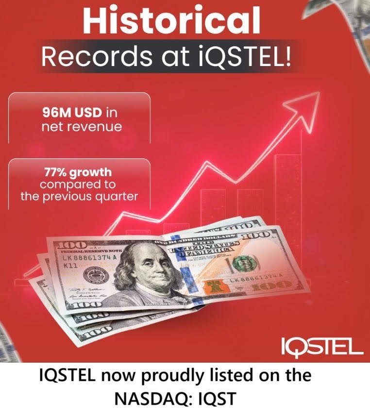 CORAL GABLES, Fla.July 22, 2025PRLogIn a powerful move that’s captivating the investment community, IQSTEL Inc. (N A S D A Q: IQST) has reported $128.8 million in preliminary revenue for the first half of 2025, far exceeding expectations and placing the company ahead of schedule in its aggressive growth roadmap. IQSTEL is now on track to hit a $400 million annualized run rate in Q3, solidifying its position as a high-tech global communications and fintech leader.