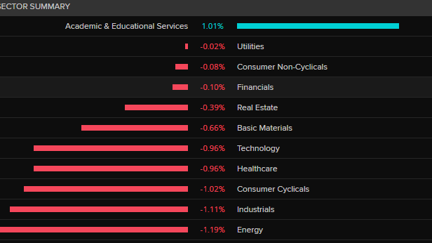 Academic & Educational Services is the only sector in positive territory on the ASX 200 today.