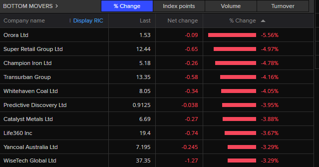 Bottom Movers (Refinitif.com)