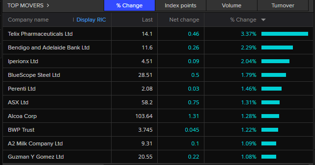 Top Movers (Refinitiv.com)