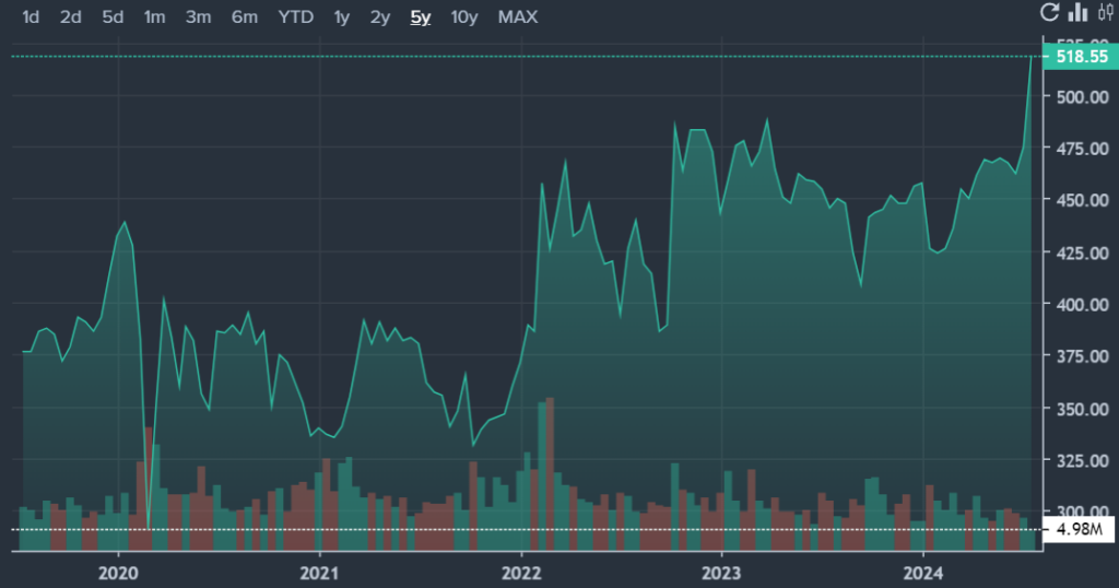 • Wells Fargo: Maintained an Equal-Weight rating, increasing the price target from $483 to $525.