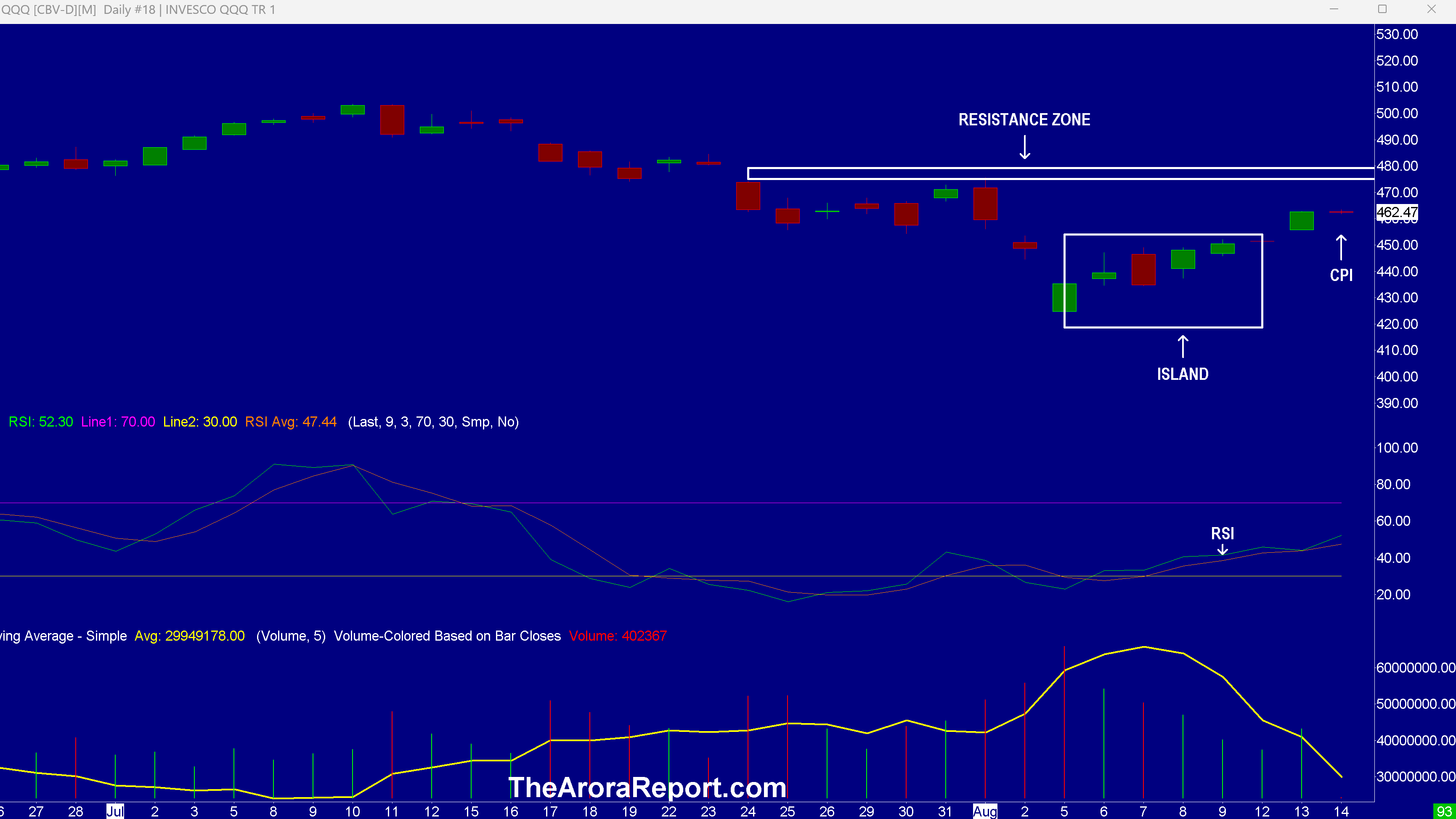 • The chart shows that QQQ has traced an island reversal. This is a bullish technical pattern.