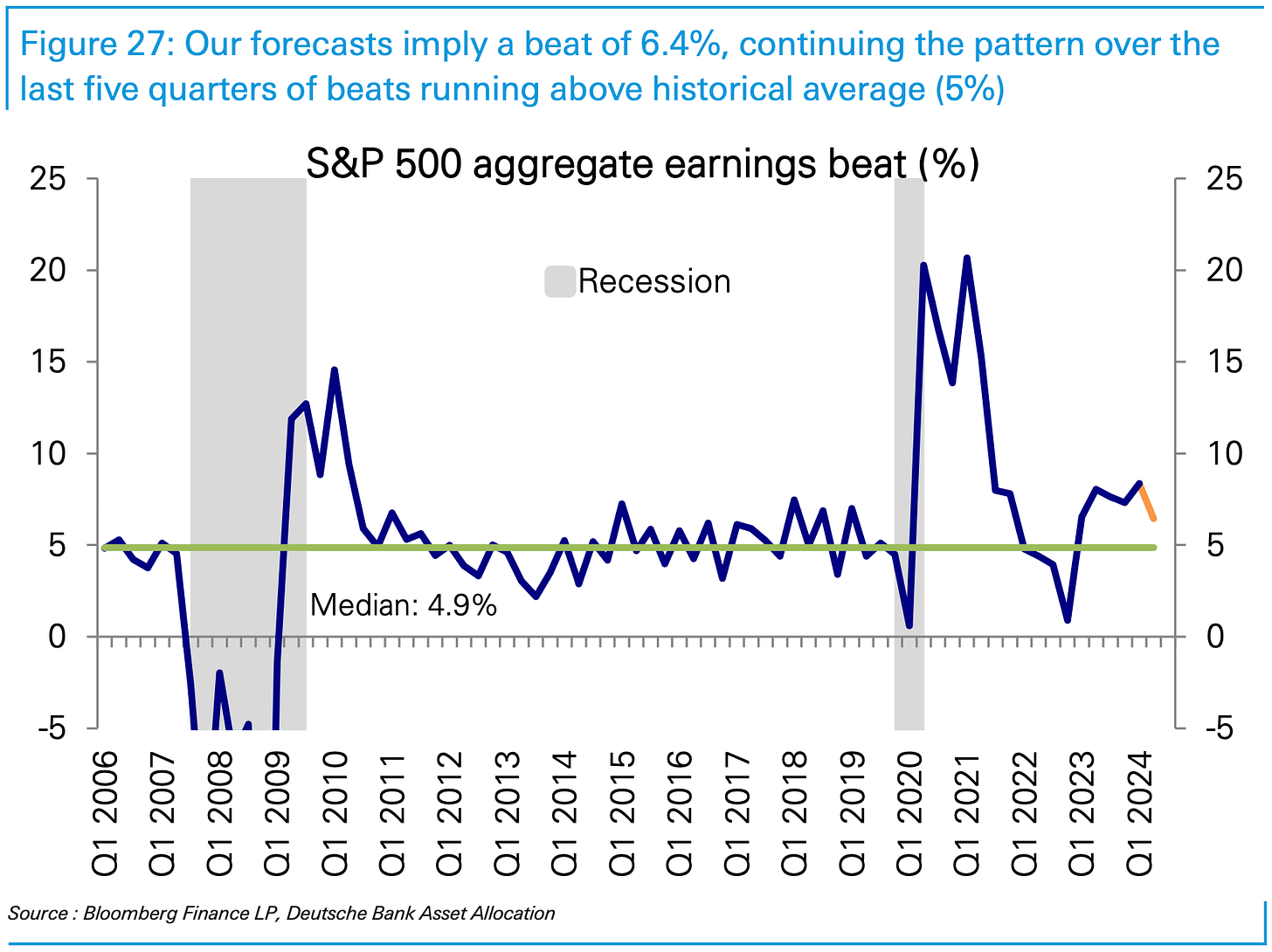 Most companies report better-than-expected earnings. (Source: Deutsche Bank)
