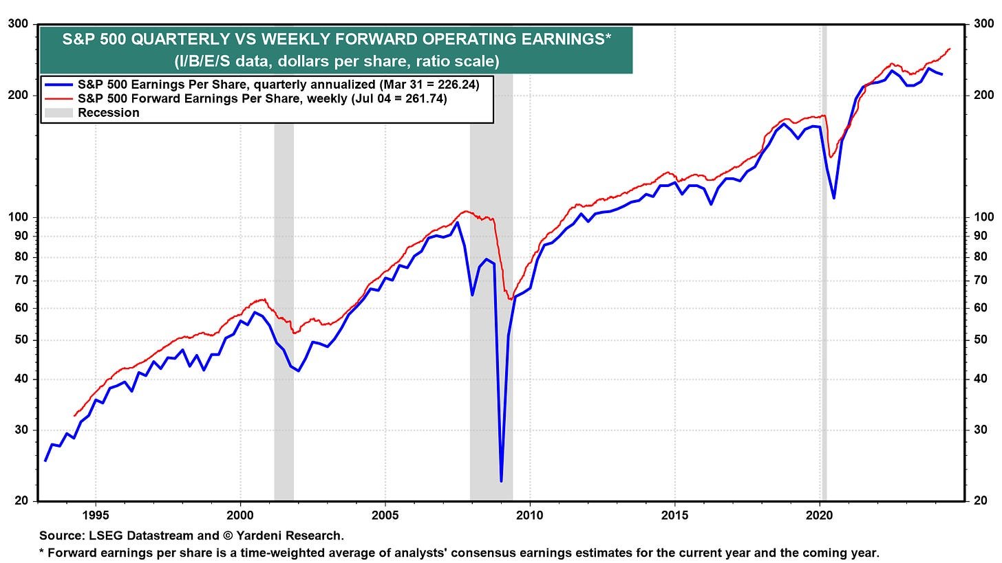 “S&P 500 earnings results over the most recent three quarterly reporting seasons (Q3 ‘23, Q4 ‘23, and Q1 ‘24) and economic data that has provided evidence of resilience underpinned by the Fed’s mandate-sensitive monetary policy remains at the core of our bullish outlook for stocks,“ he wrote.