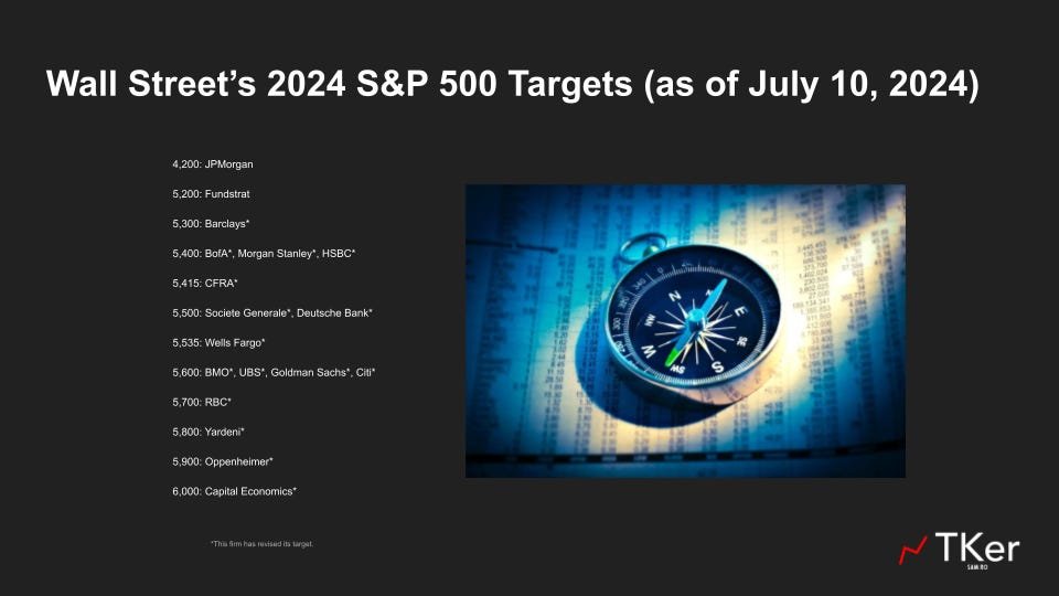 On July 2, RBC’s Lori Calvasina raised her year-end target for the S&P 500 to 5,700 from 5,300. This was her third revision from her initial target.