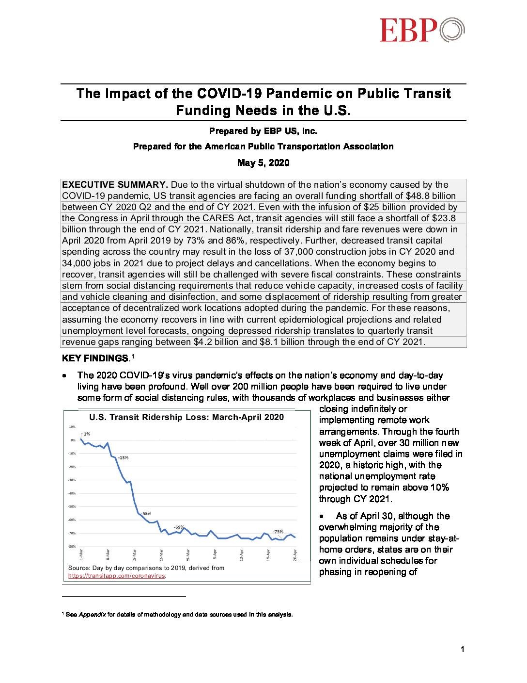 The Impact of the COVID-19 Pandemic on Public Transit Funding Needs in the U.S.