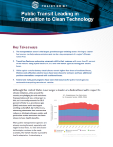 The transportation sector is now the largest greenhouse gas emitting sector. Public transit agencies have been reducing their impact by modernizing their bus fleets, with now more than 21 percent of vehicles being hybrid-electric in 2018, and with agencies turning to pure electric buses. While capital costs for zero-emission buses remain higher than those of conventional buses, the lifetime costs of zero-emission buses are projected to be competitive with conventional buses. Public transit agencies nationwide are taking advantage of federal and state grant programs to acquire new electric vehicles.