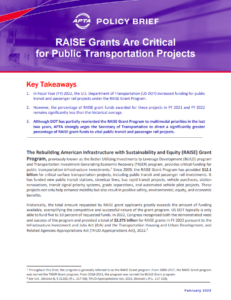 Since 2009, the RAISE Grant Program has provided $12.1 billion for critical surface transportation projects, including public transit and passenger rail investments. It has funded new public transit stations, streetcar lines, bus rapid transit projects, vehicle purchases, station renovations, transit signal priority systems, grade separations, and automated vehicle pilot projects. These projects not only help enhance mobility but also result in positive safety, environmental, equity, and economic benefits. However, the percentage of RAISE grant funds awarded for these projects in FY 2021 and FY 2022 remains significantly less than the historical average.