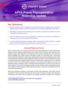 APTA’s Policy Research Team has identified four major factors causing public transportation ridership declines, and the steps agencies can take to mitigate those factors and positively impact ridership.