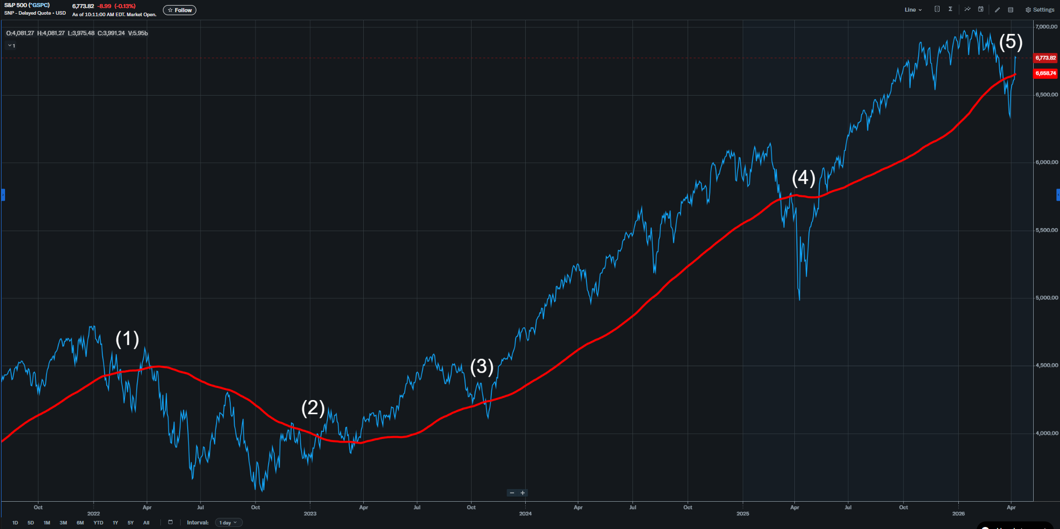 The S&P 500 (^GSPC) just reclaimed its 200-day moving average again, tilting the stock market back toward the bulls. See label (5) on the chart below. It’s never quite that simple, but it doesn’t need to be much more complicated. The last time the index broke below the 200-day moving average — in March 2025, near label (4) — it lost the line, then …