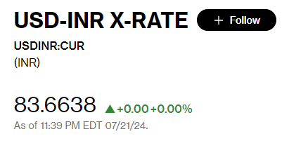 Currency Check :: Rupee opens at 83.65/$ vs Friday’s close of 83.66/$