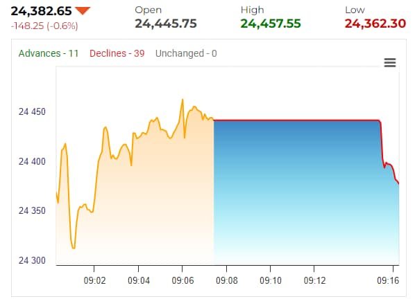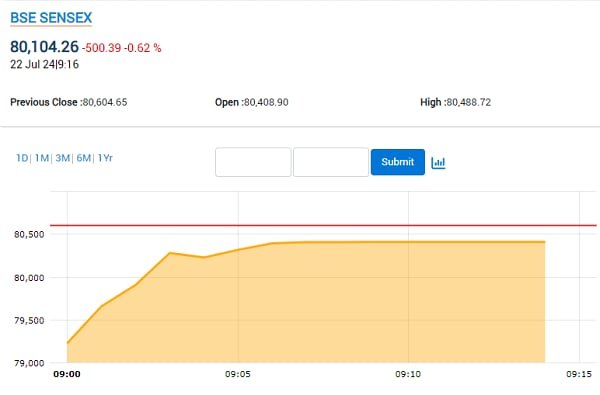 Opening Bell: Indian benchmark indices retreated at open on Monday, with BSE Sensex slipping 463 points at 80,141 points, while the Nifty50 index fell by 147 odd points or 0.6 per cent to 24,383.