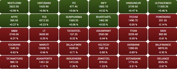 On BSE Sensex Kotak led the losses, followed by Reliance Industries, JSW Steel, HCL Tech, IndusInd Bank, Bajaj Finance, Asian Paints, ICICI Bank and Tech Mahindra while Nestle India, Infosys, HUL, ITC, and TCS were among top gainers.