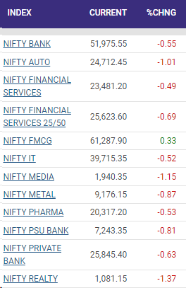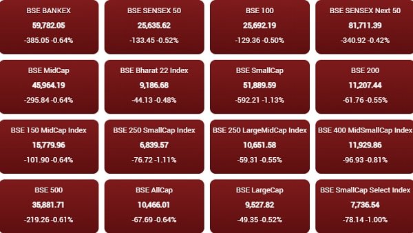In line with the benchmarks, the broader markets also showed weakness, with the MidCap index dropping by 0.77 per cent and the SmallCap index declining by 1.34 per cent.