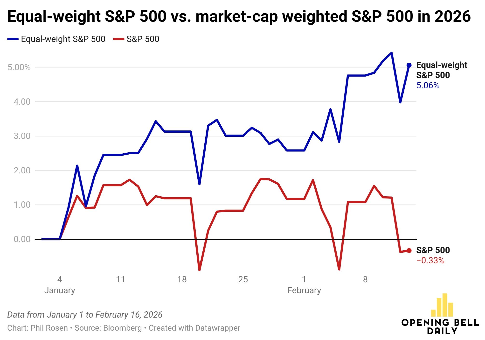 While the traditional market-cap weighted index is flat year-to-date, the equal-weight version is up more than 5%.