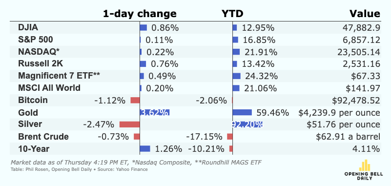 📉 The labor market is sending more mixed signals. Claims for unemployment benefits fell to a three-year low, yet layoffs climbed in November with a 24% jump year-over-year, according to Challenger data. (Yahoo Finance)