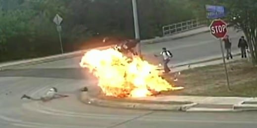 Fiery motorcycle crash caught on camera