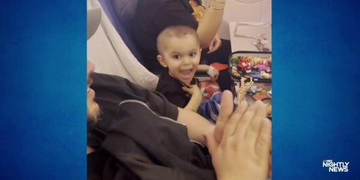 Two-year-old boy celebrates being cancer free with help from a plane full of passengers