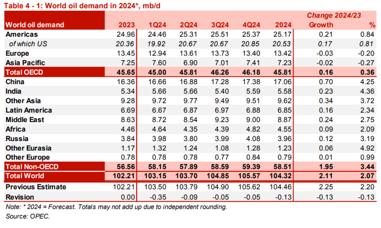 Futures remained higher after the Organization of the Petroleum Exporting Countries, in its monthly report, slightly trimmed its forecast for crude-oil demand growth in 2024, citing softness in Chinese demand, and also slightly pulled back on its 2025 forecast.