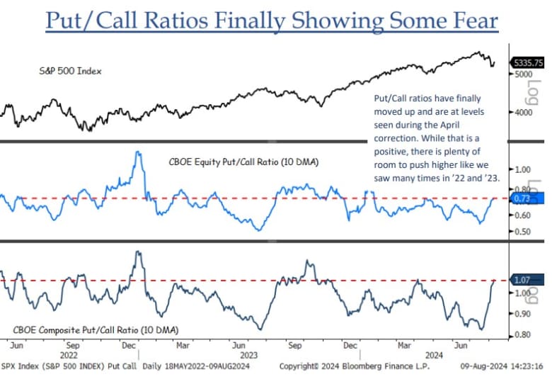 Sure, there are some positive technical signs. The put/call ratio is back to levels seen during April, Krinsky notes. When the ratio is low it points to investors buying many more call options (the right to buy stocks) than put options (the right to sell) and suggests they are complacent about a possible sell-off.