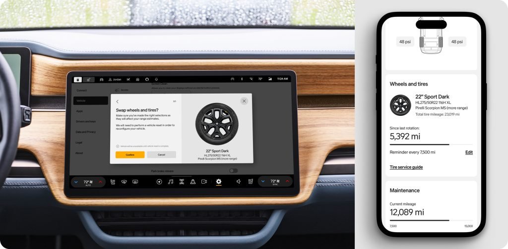 Rivian has added proactive detection for tire punctures and slow leaks, set to notify drivers of a potential flat tire before it happens.