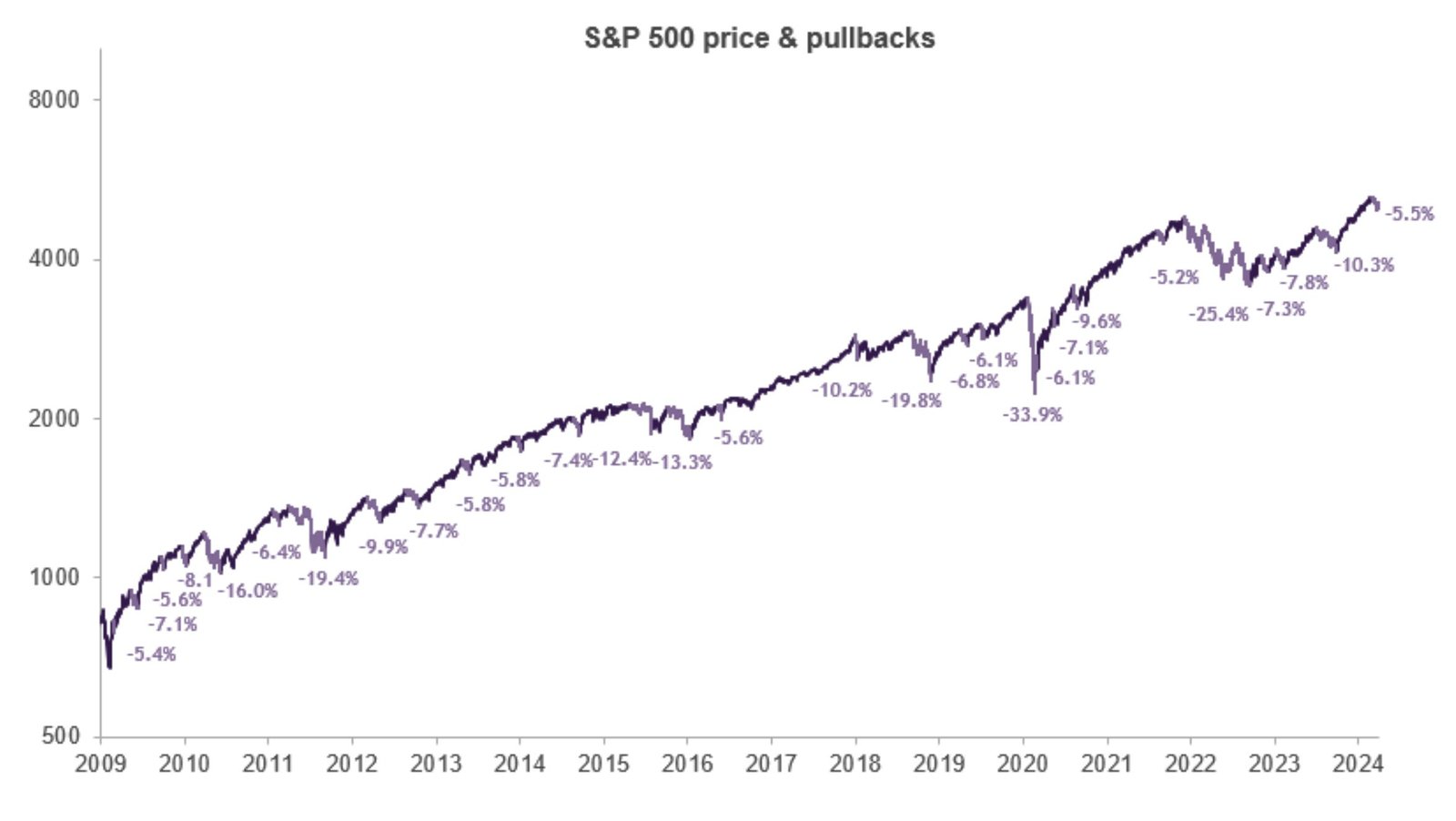 From Truist’s Keith Lerner: “Since March 9, 2009, where stocks bottomed following the Global Financial Crisis, we count 28 previous pullbacks of at least 5% for the S&P 500. Impressively, despite these setbacks, stocks are up 644% on a price basis and 900% including dividends over that entire period.“