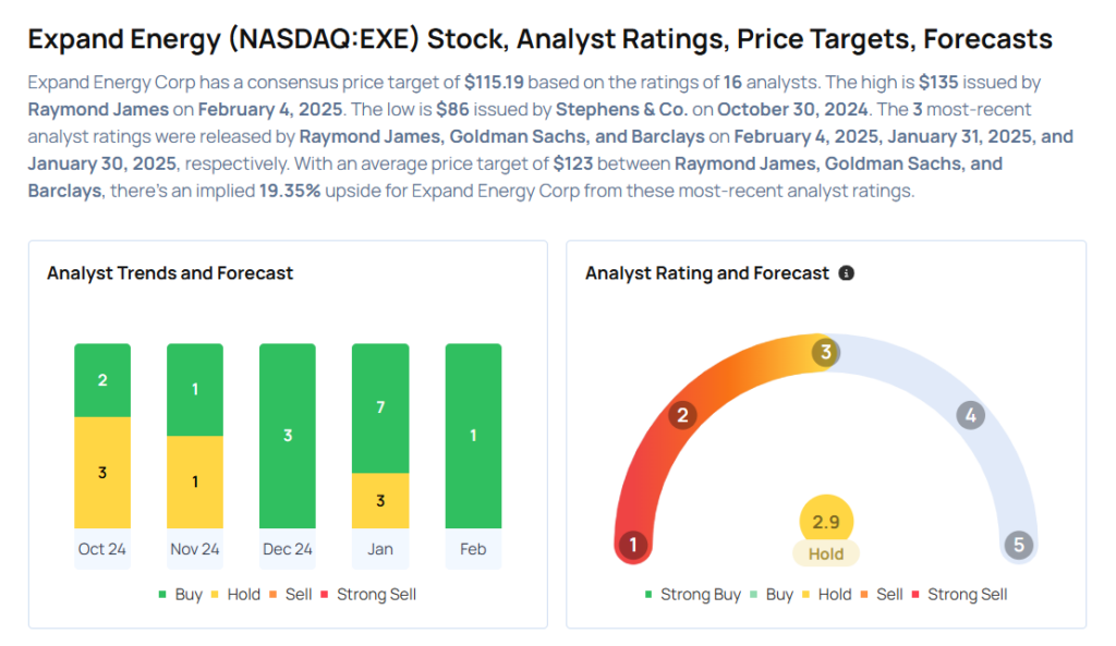 - Raymond James analyst John Freeman initiated coverage on Expand Energy Corporation EXE with a Strong Buy rating and announced a price target of $135. Expand Energy shares closed at $102.87 on Monday. See how other analysts view this stock.