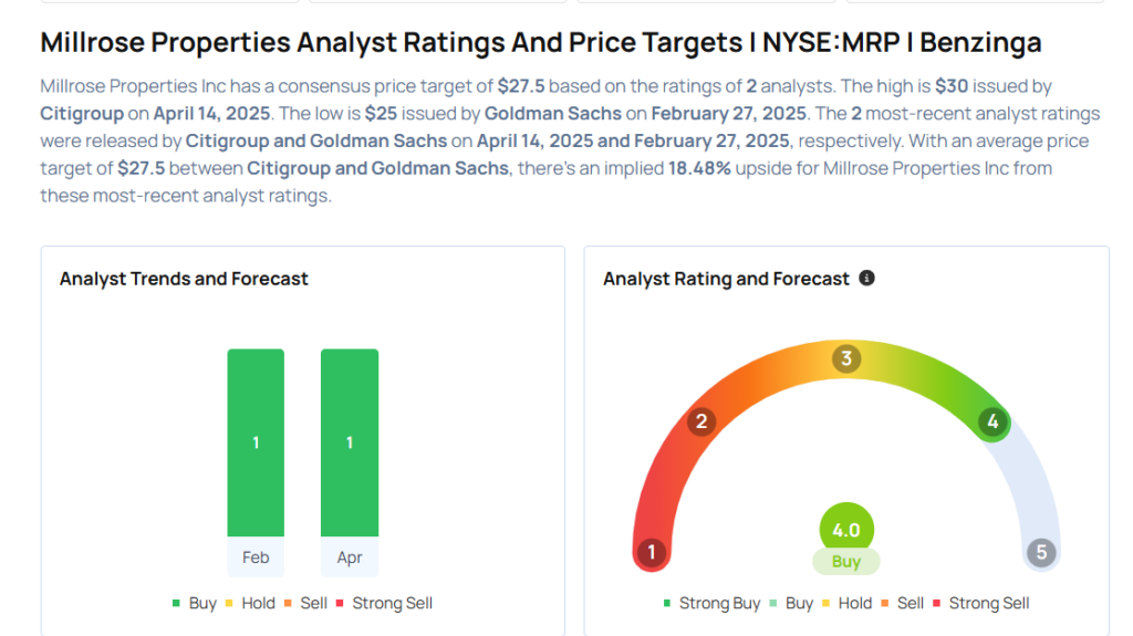 - Citigroup analyst Eric Wolfe initiated coverage on Millrose Properties, Inc. MRP with a Buy rating and announced a price target of $30. Millrose Properties shares closed at $23.31 on Friday. See how other analysts view this stock.