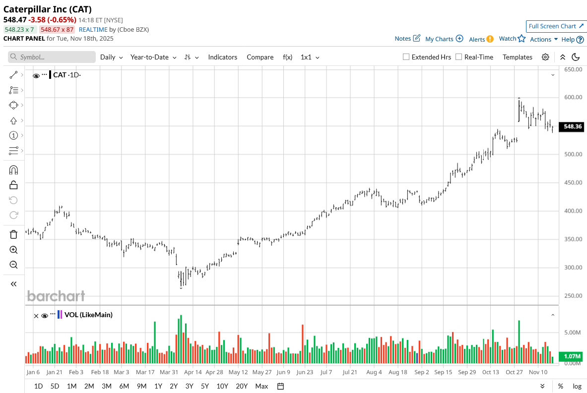 The stock has enjoyed an incredible run over the last 12 months, having traded between $267.30 and $596.21 over the last 52 weeks. Presently, CAT is trading at about $548, which is a tremendous increase from last year and is leaving most traditional industrial stocks in its wake. Although it is true that the stock fell by about 3% during the last five days, it is definitely higher than what it could have been if one considers early 2025 prices. Investors seem to be positioning it as a play on long-term data center infrastructure outlays.