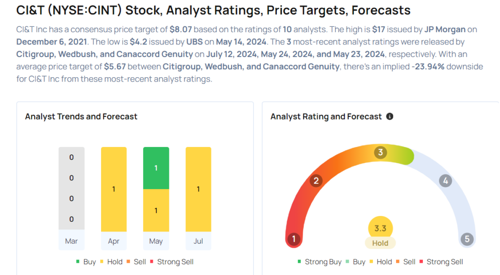 Analysts expect the Campinas, Brazil-based company to report quarterly earnings at 6 cents per share, down from 9 cents per share in the year-ago period. CI&T is expected to report quarterly revenue of $99.03 million for the quarter, compared to $113.59 million a year earlier, according to data from Benzinga Pro.