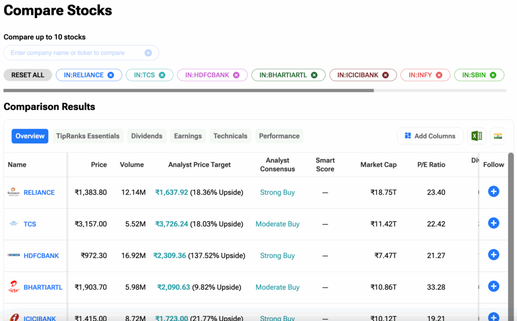 Investors watching the fallout can also track Indian stocks on the TipRanks Stocks Comparison Tool. Click on the image below to explore the tool.
