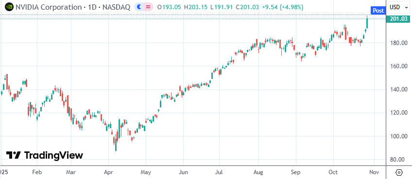 NVIDIA’s surge also drove some semiconductor stocks higher, with Intel rising 5.03% and Broadcom gaining 3.02%. Nokia surged 22.84% after NVIDIA announced a $1 billion investment in the company to accelerate AI-RAN innovation and lead the transition from 5G to 6G.
