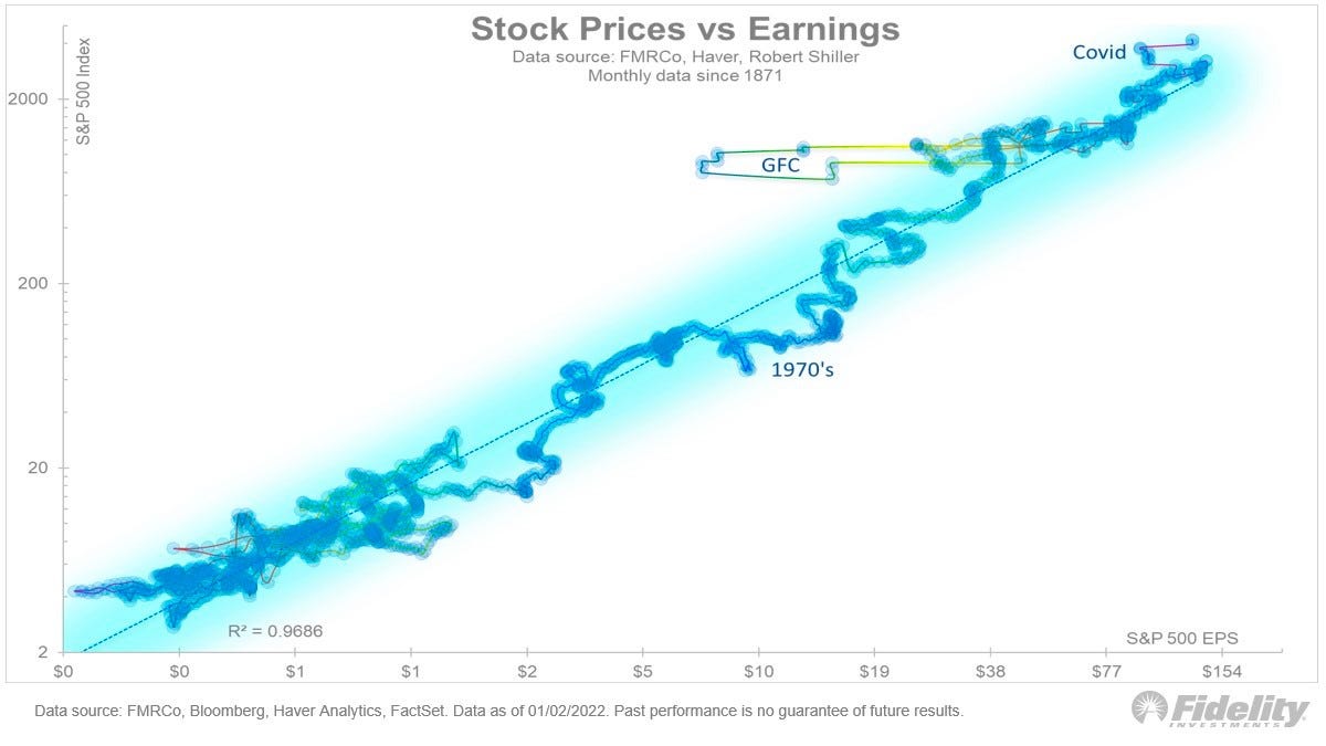 For investors, anything you can ever learn about a company matters only if it also tells you something about earnings. That’s because long-term moves in a stock can ultimately be explained by the underlying company’s earnings, expectations for earnings, and uncertainty about those expectations for earnings. Over time, the relationship between stock prices and earnings has a very tight statistical relationship.
