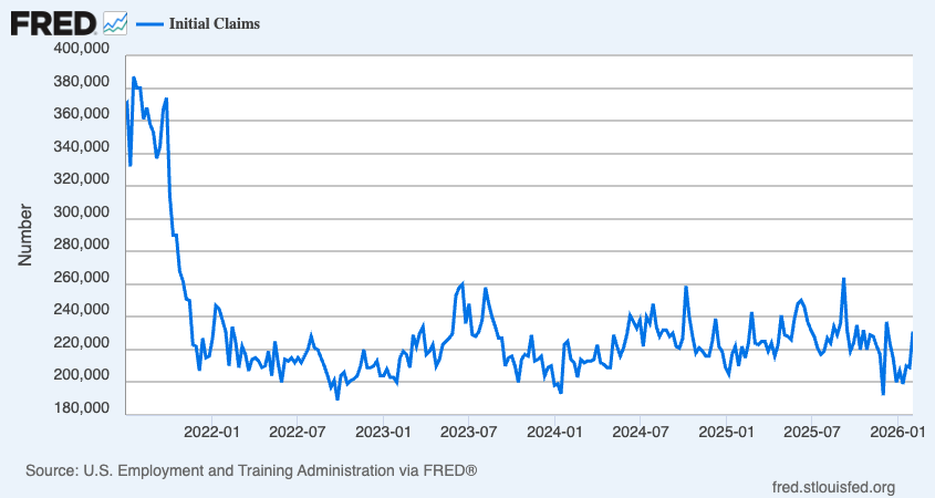 💼 New unemployment insurance claims and total ongoing claims rise. Initial claims for unemployment benefits increased to 231,000 during the week ending Jan. 31, up from 209,000 the week prior. This metric remains at levels historically associated with economic growth.