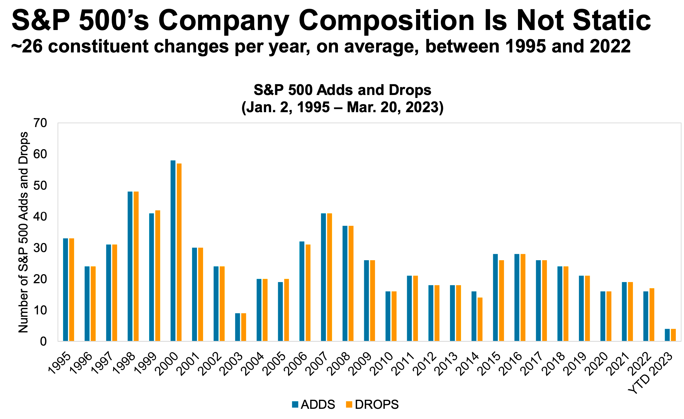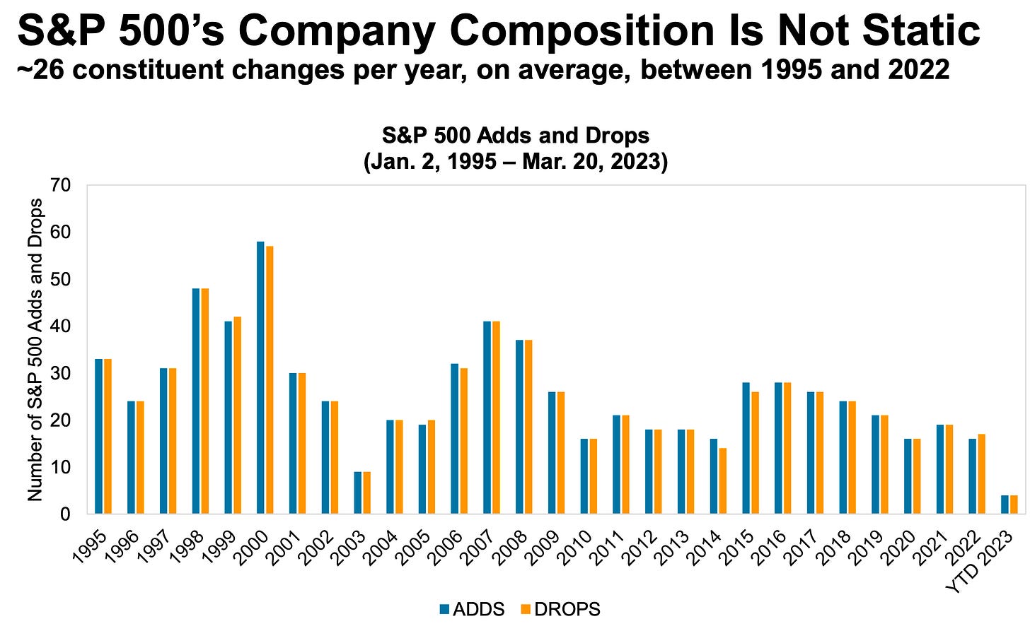 Passive investing is a concept usually associated with buying and holding a fund that tracks an index. And no passive investment strategy has attracted as much attention as buying an S&P 500 index fund. However, the S&P 500 — an index of 500 of the largest U.S. companies — is anything but a static set of 500 stocks.