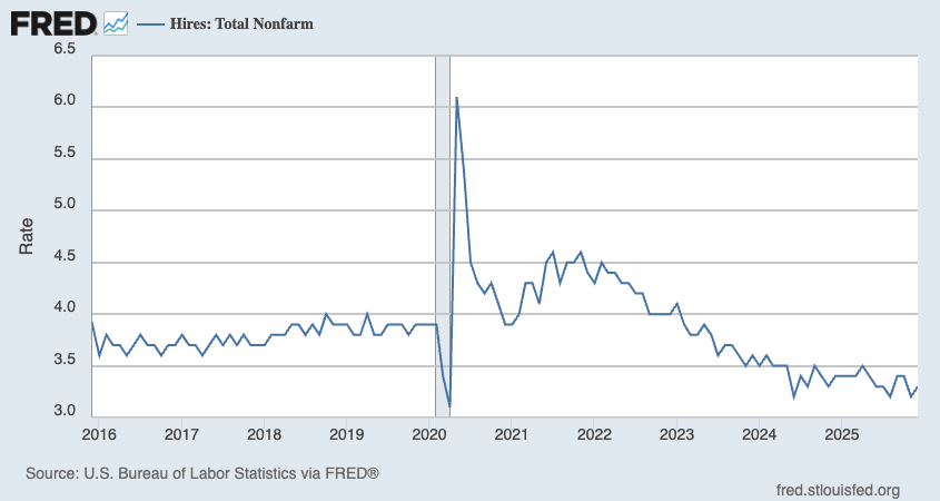 That said, the hiring rate — the number of hires as a percentage of the employed workforce — has been trending lower, which could be a sign of trouble to come in the labor market.