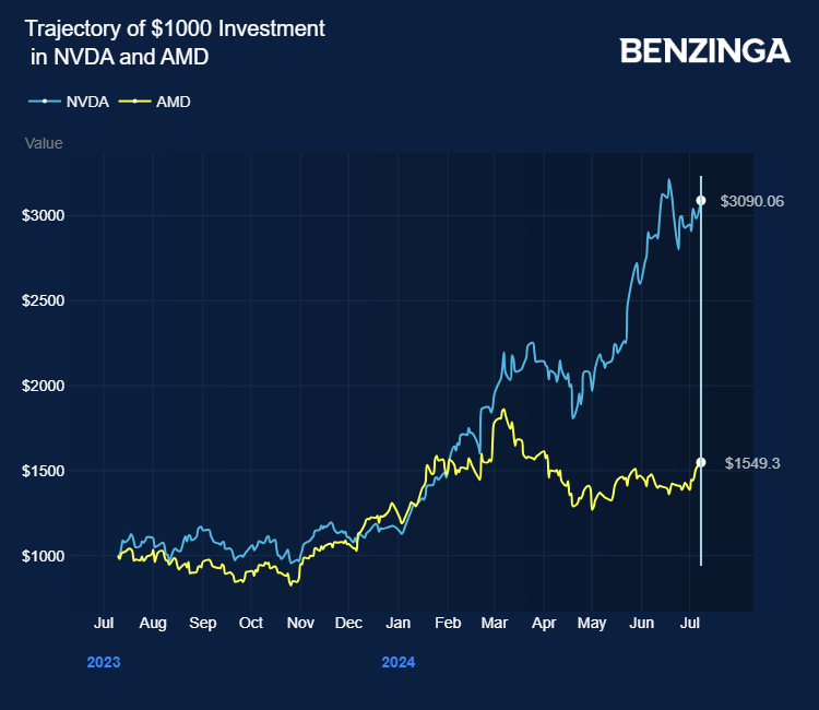 Price Actions: NVDA shares traded higher by 2.34% at $128.77 at the last check Monday. AMD is up 1.40% at $174.31.