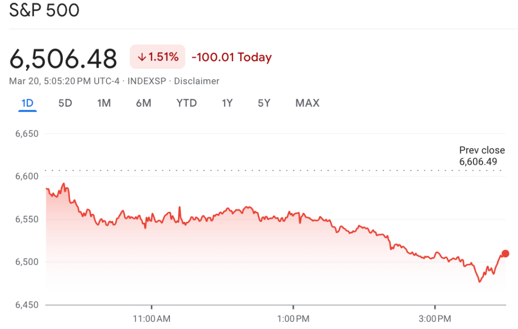 Overall, stocks fell sharply on Friday, with the S&P 500 hitting a six-month low as the U.S.-Israeli war with Iran entered its fourth week, intensifying fears of oil supply disruptions and persistent inflation.