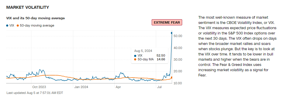 Stock market volatility has risen from 13 on the VIX on July 16 to 42 by Monday morning.