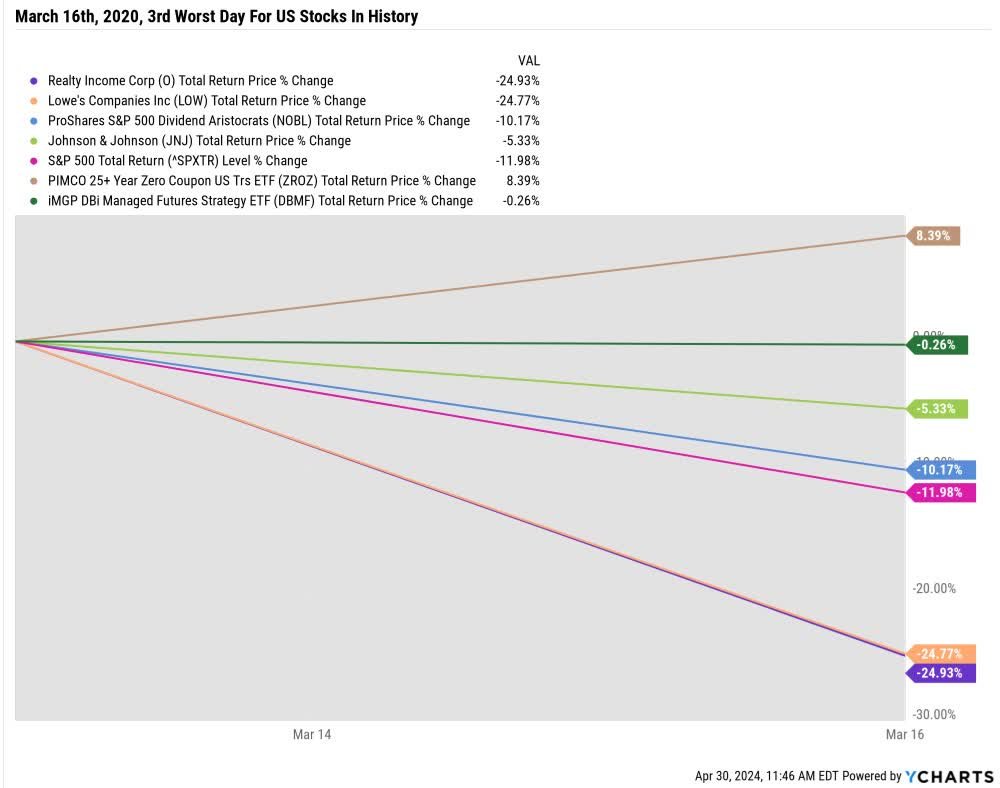 That kind of forced selling can take 25% off even dividend aristocrats like Realty Income (O) and dividend kings like Lowe’s (LOW).