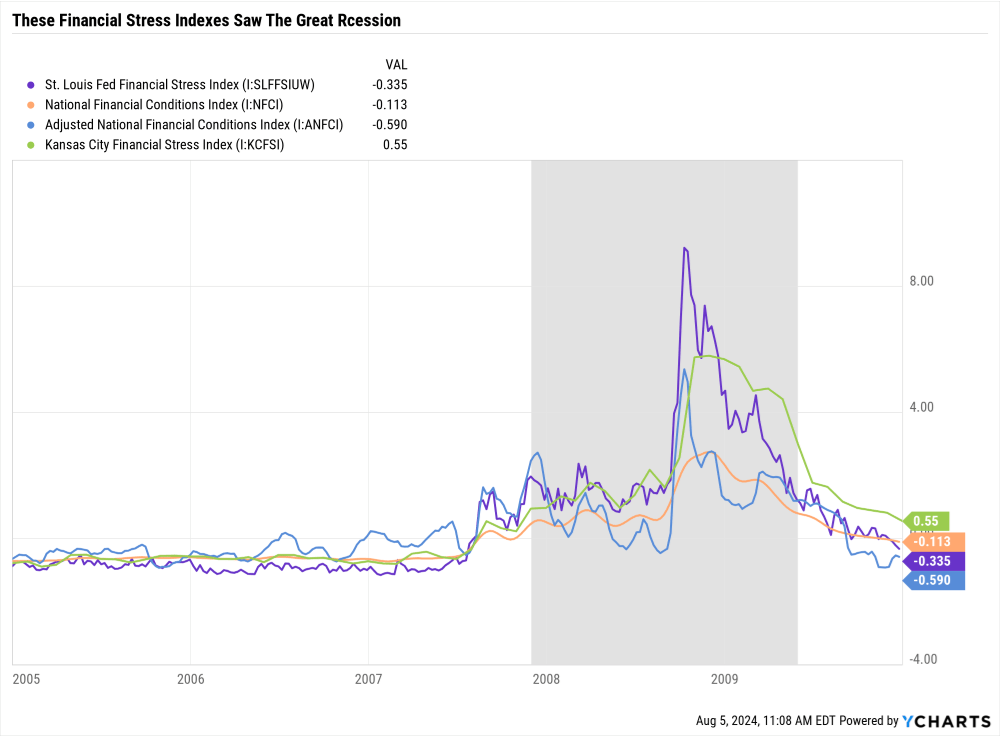 - Other Indicators include the S&P 500 Financials Index and the Kansas City Financial Stress Index.